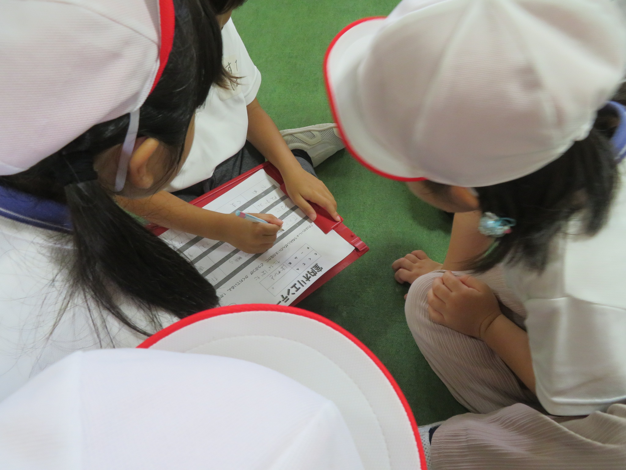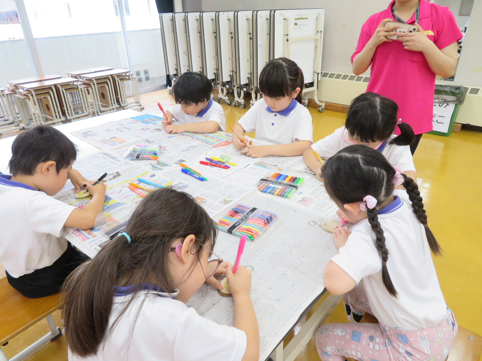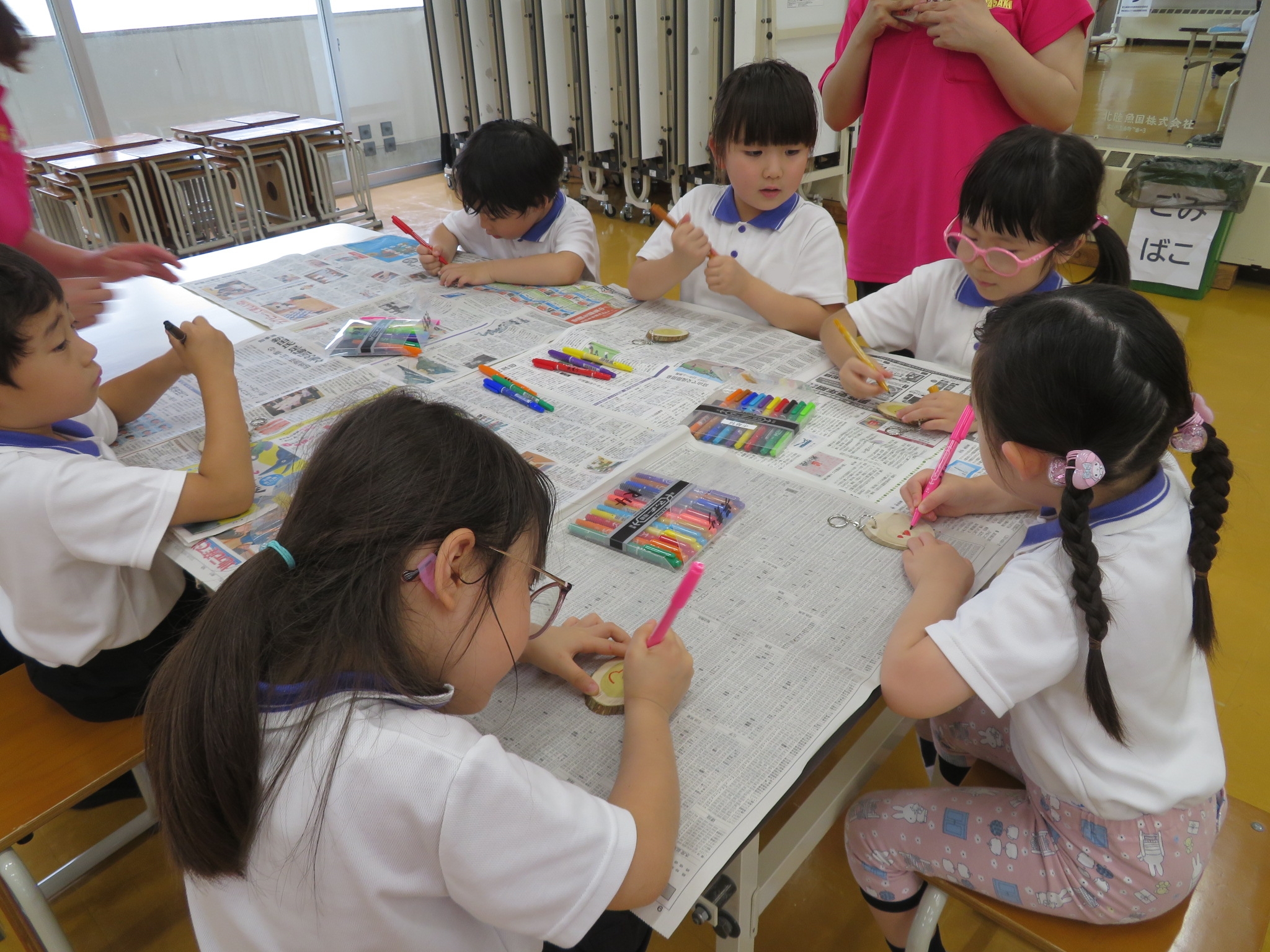 楽しかった自然体験学習! 2024/07/10 年長組が、呉羽青少年自然の家に自然体験学習に行ってきました。 天候は雨。外での活動は残念ながらできませんでしたが、室内での活動を楽しみました。室内オリエンテーリングでは、探偵のような身のこなしで“いきものカード”を探しまいた。見過ごしてしましそうな場所にあるカードを発見することができ、大盛り上がりでした!キーホルダー作りでは、自分だけのオリジナル作品を作ることができました(^^♪