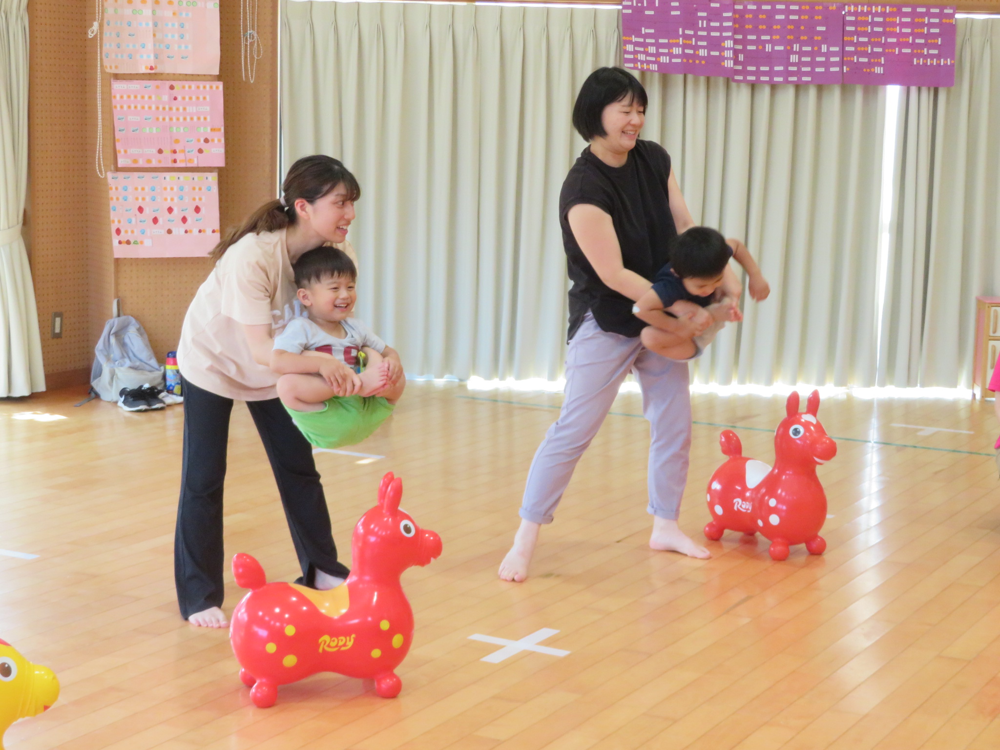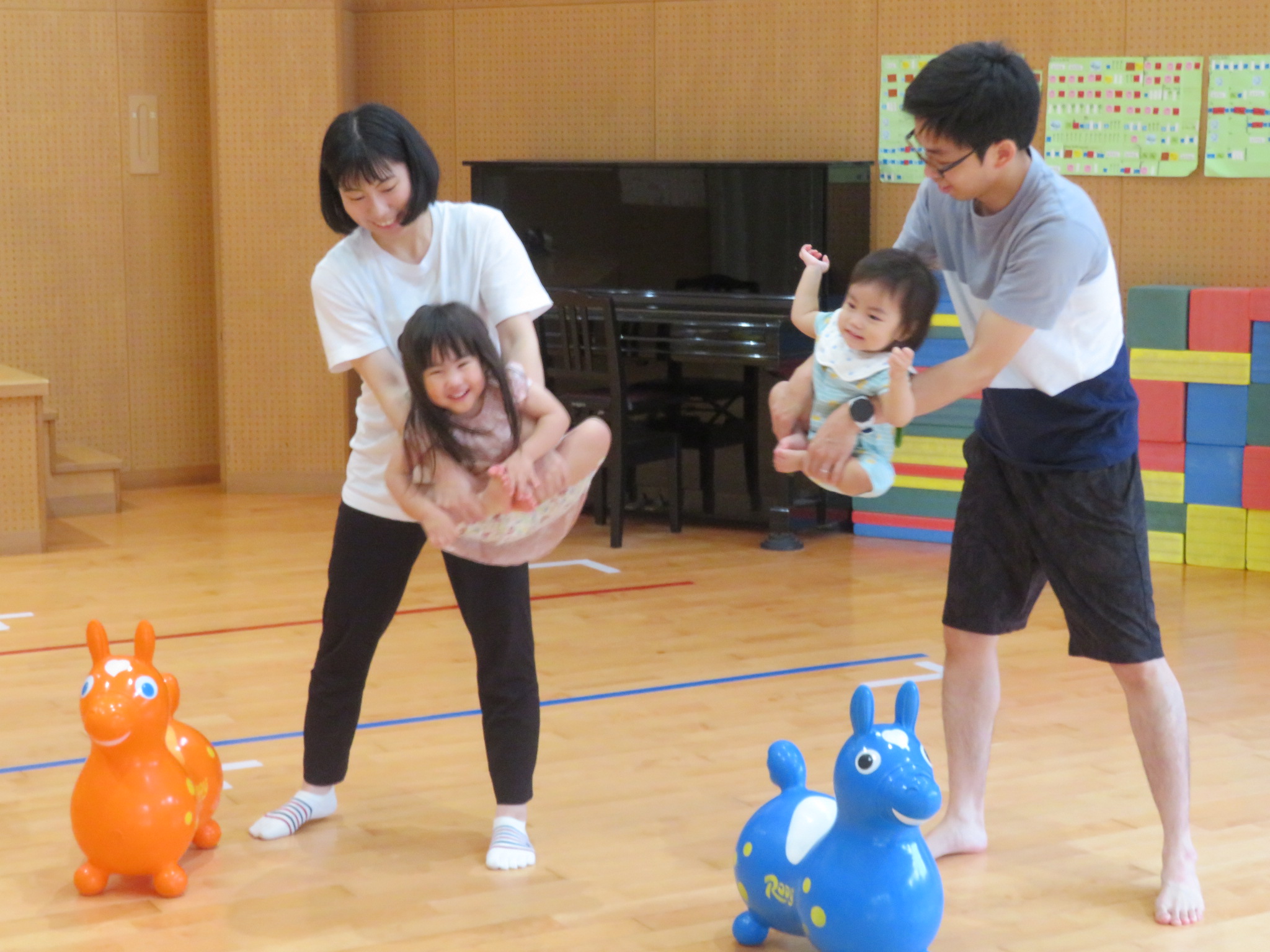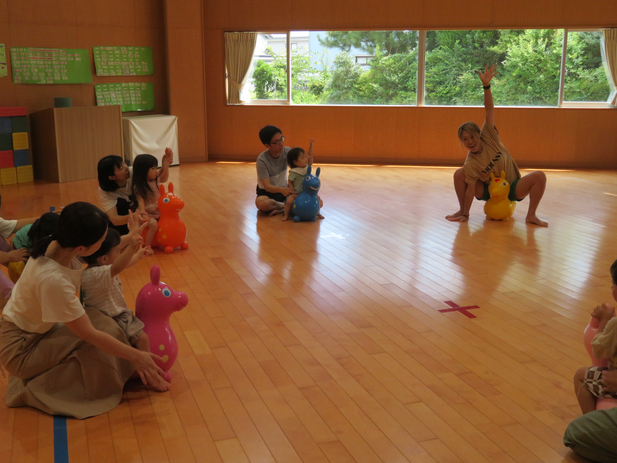 (未就園児対象)なかよしスクールがありました! 2024/07/16 藤岡樹里先生を講師に招き「親子でロディヨガ」をしました。 ぴょんぴょん跳ねるロディに大興奮の子ども達。お家の方と、たくさんふれあいながら楽しく遊ぶことができました(^^) ☆次回は、9月6日(金)『リズムあそびをしよう』です! ぜひ、遊びにきてください!