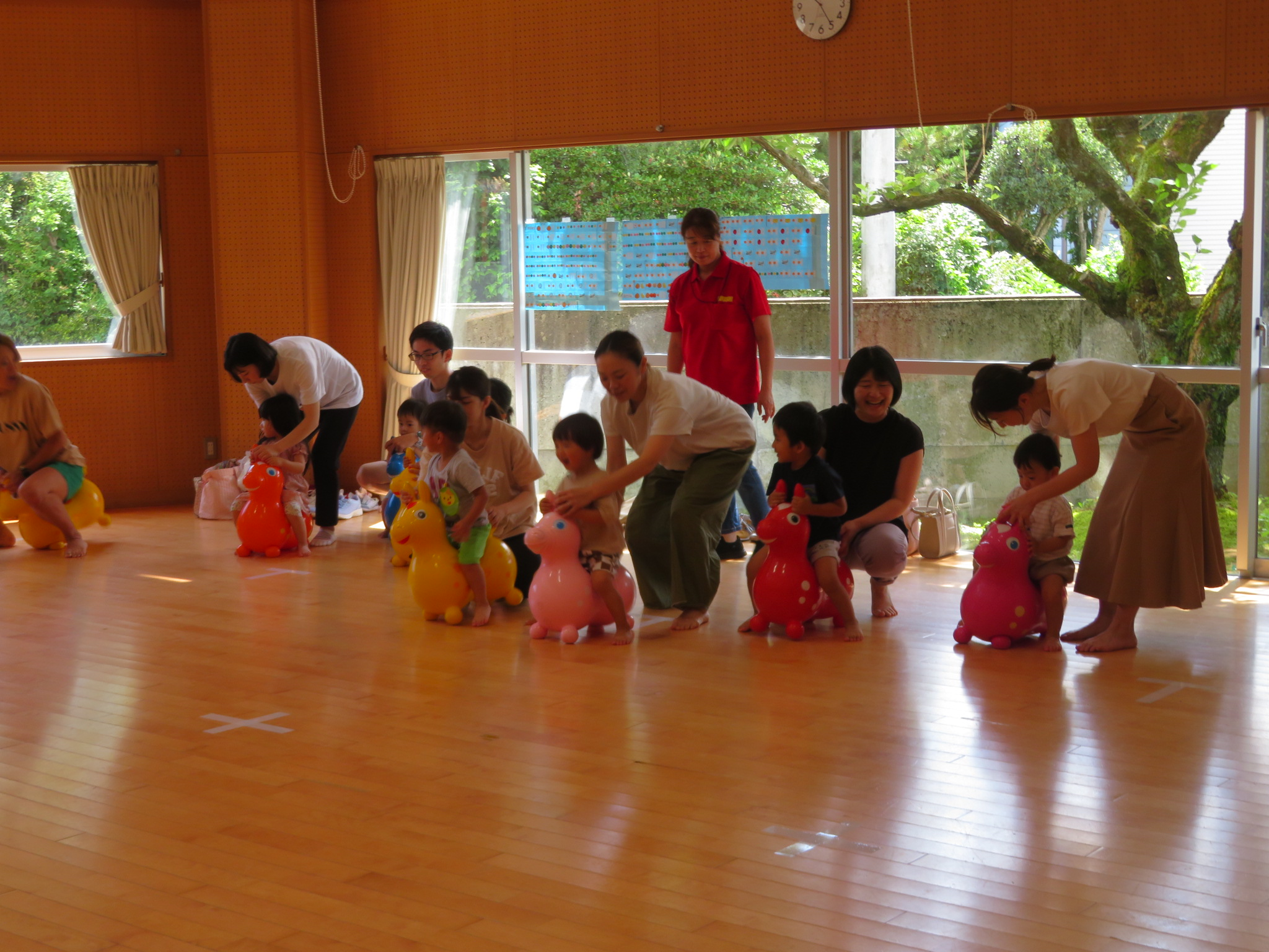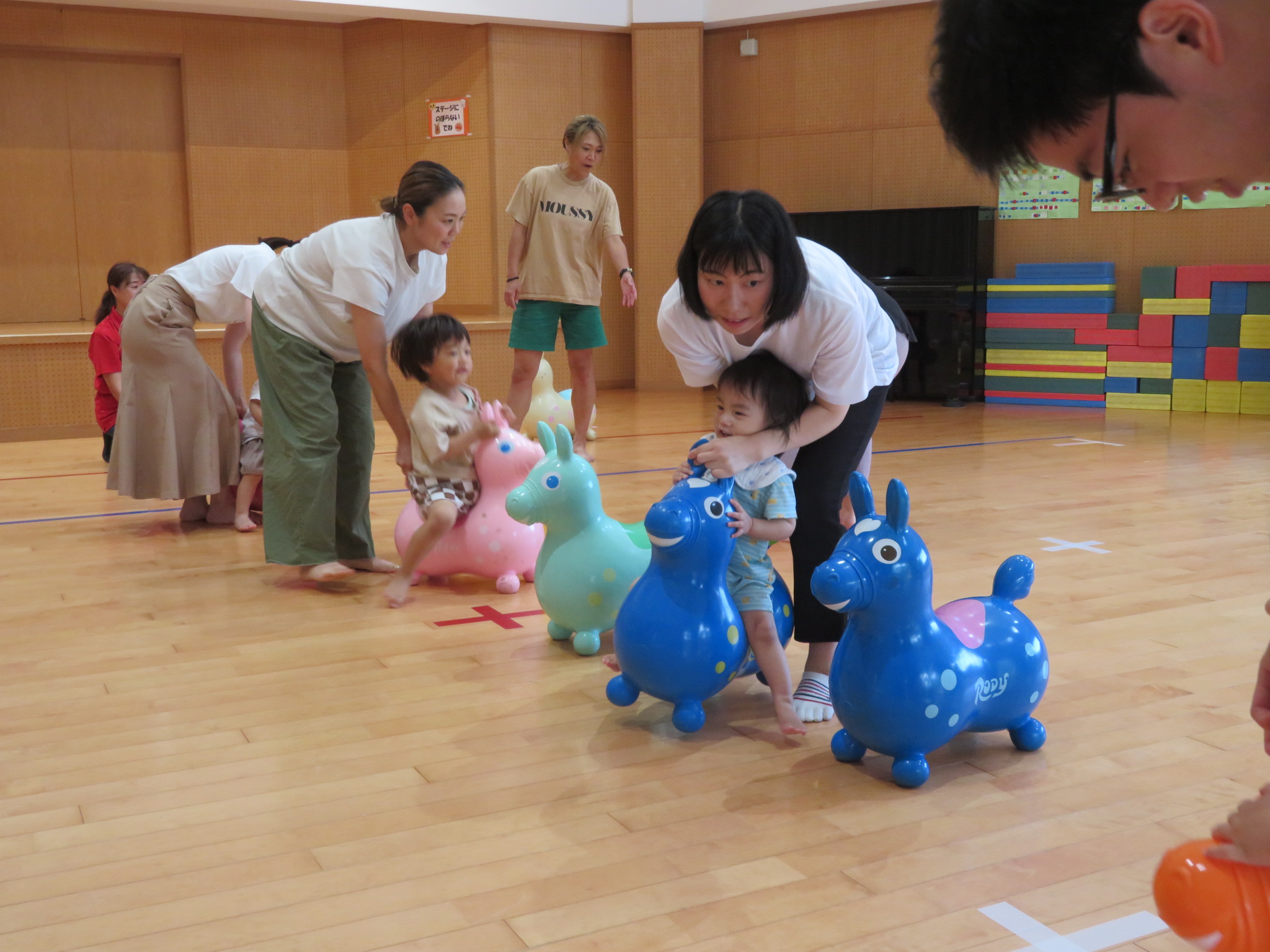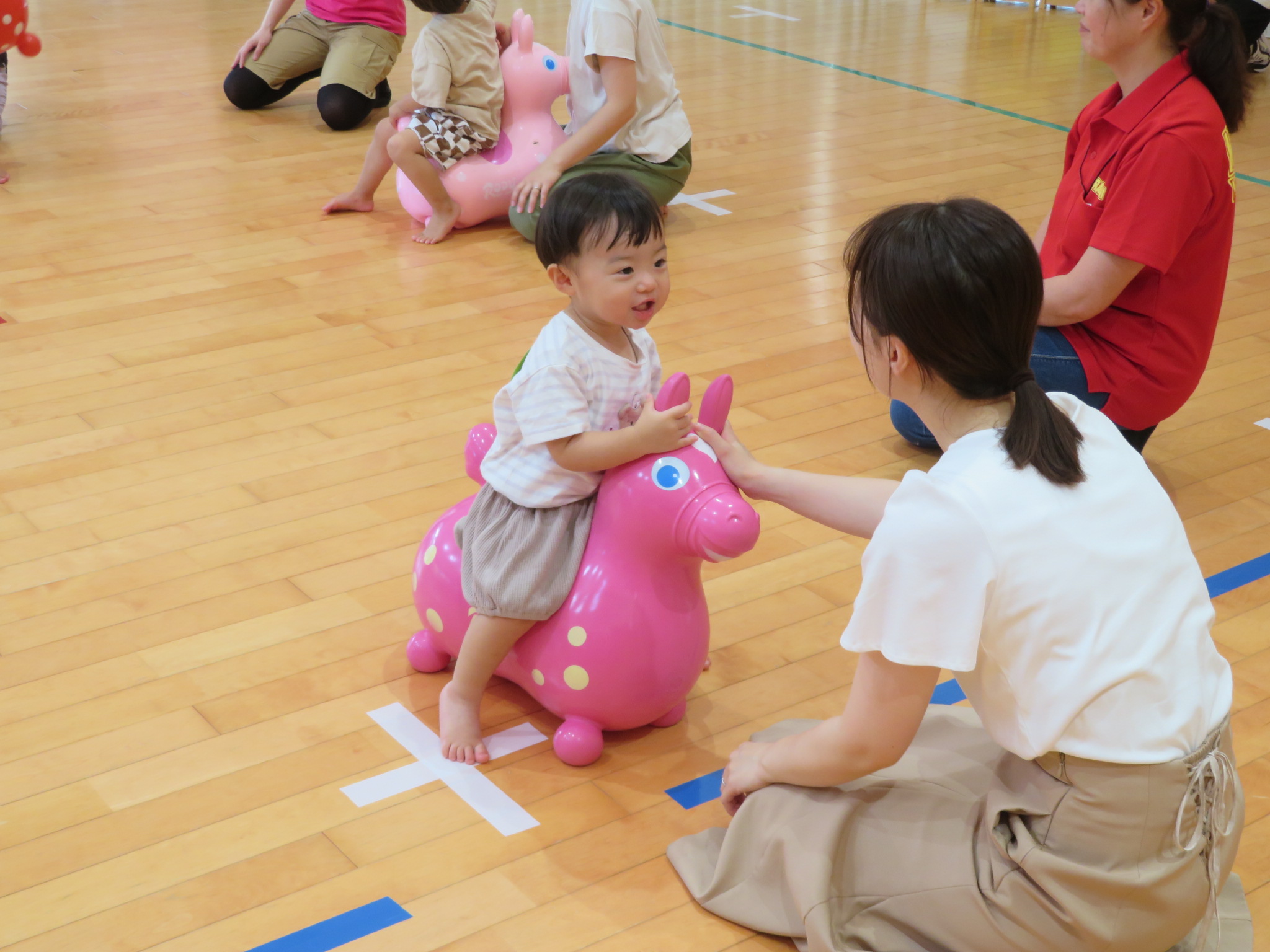 (未就園児対象)なかよしスクールがありました! 2024/07/16 藤岡樹里先生を講師に招き「親子でロディヨガ」をしました。 ぴょんぴょん跳ねるロディに大興奮の子ども達。お家の方と、たくさんふれあいながら楽しく遊ぶことができました(^^) ☆次回は、9月6日(金)『リズムあそびをしよう』です! ぜひ、遊びにきてください!