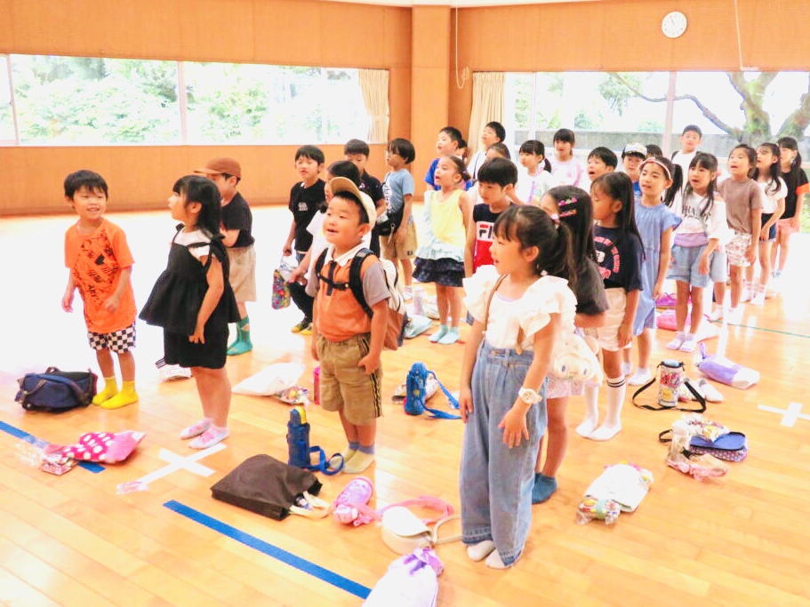 同窓会がありました! 2024/07/25 同窓会がありました。 1年生の子どもたちが、幼稚園に遊びにきてくれました! ゲームをしたり、お喋りをしながらみんなで一緒にお菓子を食べたりして楽しい時間を過ごしました。 〈クラスで整列!〉 運動会順の並び方!覚えているかな? 〈園長先生の挨拶〉 〈ゲームタイム〉 〈おやつタイム〉 久しぶりに会えて嬉しいね♪ また幼稚園に遊びにきてね!