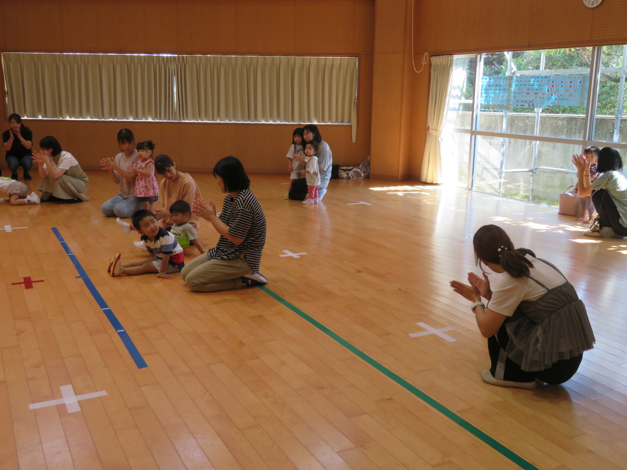 (未就園児対象)なかよしスクールがありました! 2024/09/06 リトミック講師の矢木和代先生と一緒に、親子でふれあい遊びを楽しみました。 お家の人と一緒に手遊びをしたり、音楽に合わせて高く抱っこをしてもらったり、ギュとしてもらったり…とてもうれしそうな子ども達でした(^^) ☆9月18日(水)は、令和7年度の入園希望の方に向けて入園説明会があります。 10時から 場所:紫幼稚園・遊戯室です。ぜひお越しください! ☆次回は、9月27日(金)『作ってあそぼう』です! ぜひ、遊びにきてください!