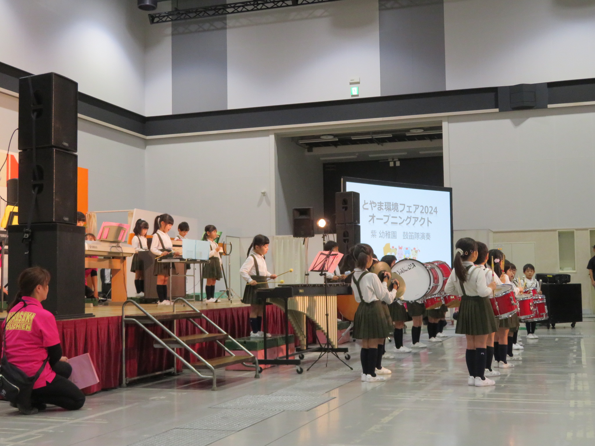 富山環境フェア2024に参加しました! 2024/10/12 年長組が、オープニングアクトで鼓笛隊演奏をしました。 これが、最後の演奏ということもあり、子ども達の頑張りや成長がより一層感じられました(^^♪