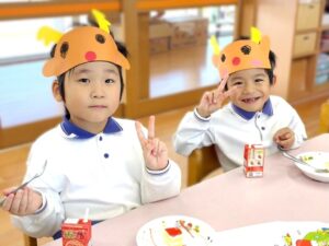 お楽しみ会がありました 2025/12/19 きときと戦士キットムーンが幼稚園に来てくれました。サンダー魔人が子ども達の笑顔を奪いにやってきました。それを助けるために、時空を超えてキットムーンが大活躍! サンダー魔人やダラー、カタイラーは、とても愉快な悪者です。キットムーンとサンダー魔人達との戦いの場面では、「がんばれー」と応援する声が自然発生!すっかり、キットムーンに魅了された子ども達でした。