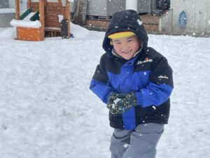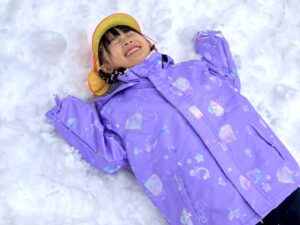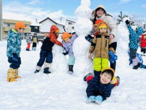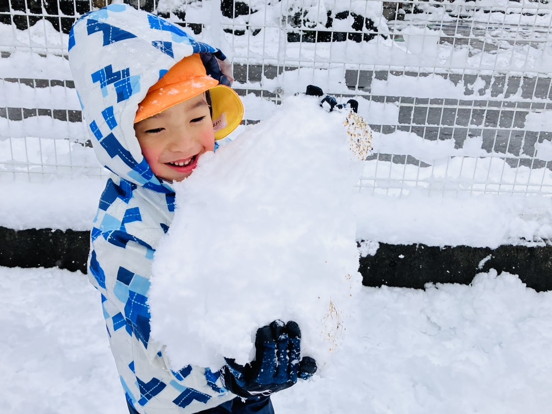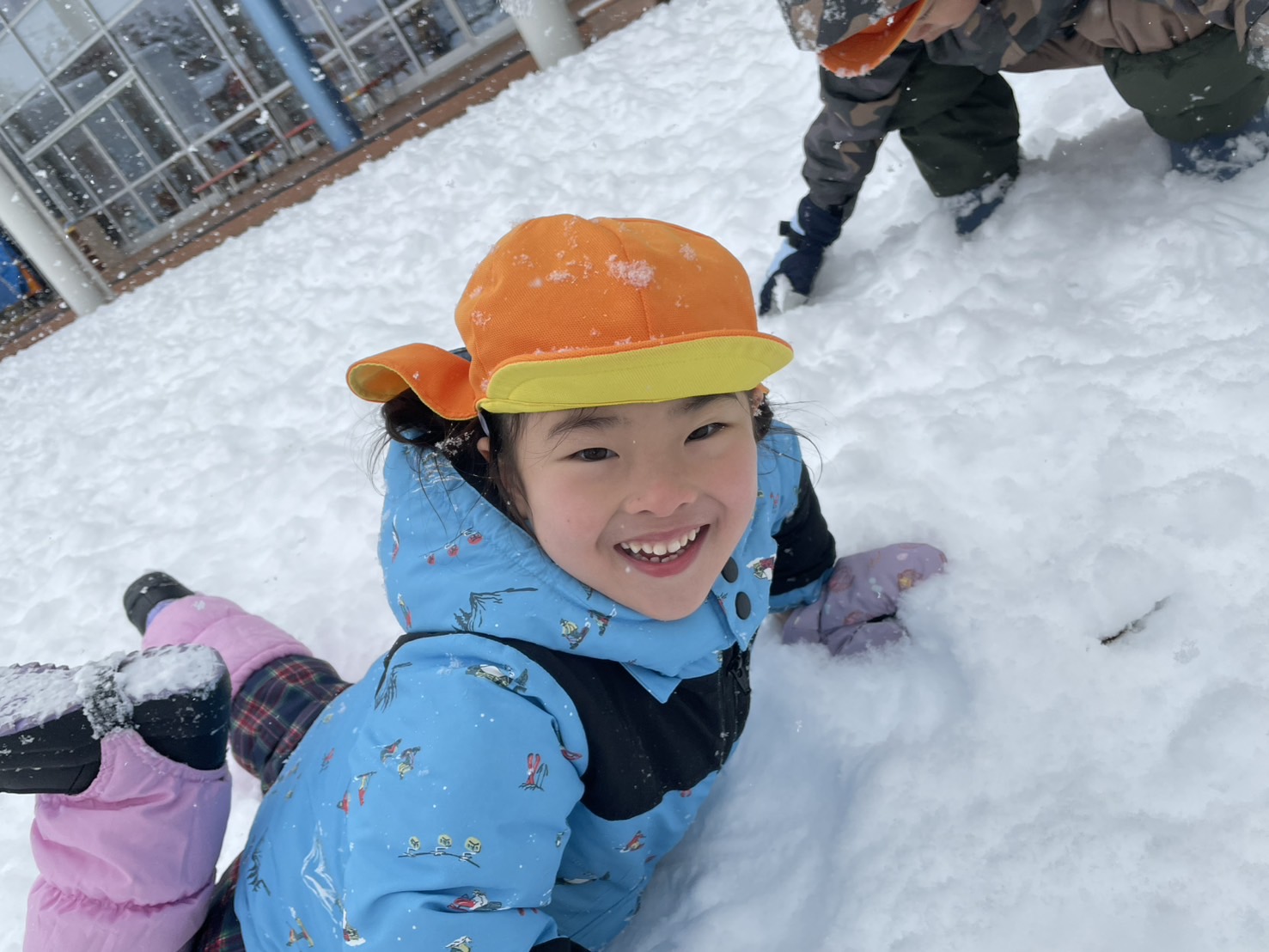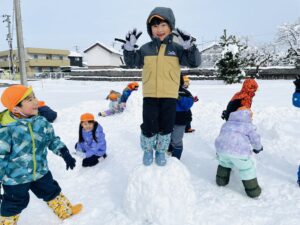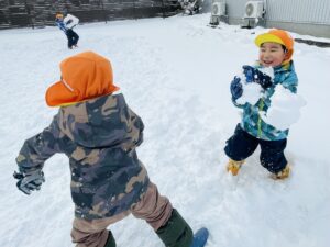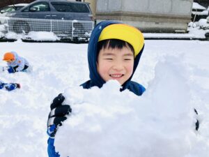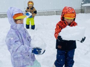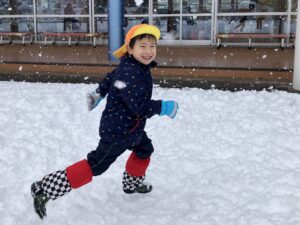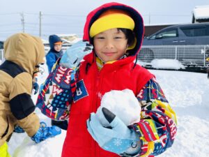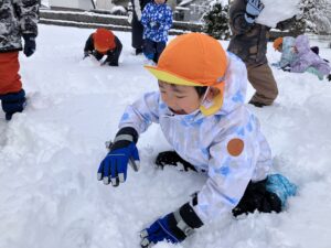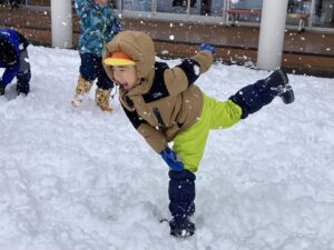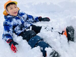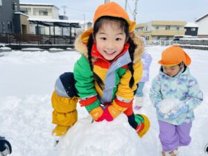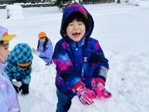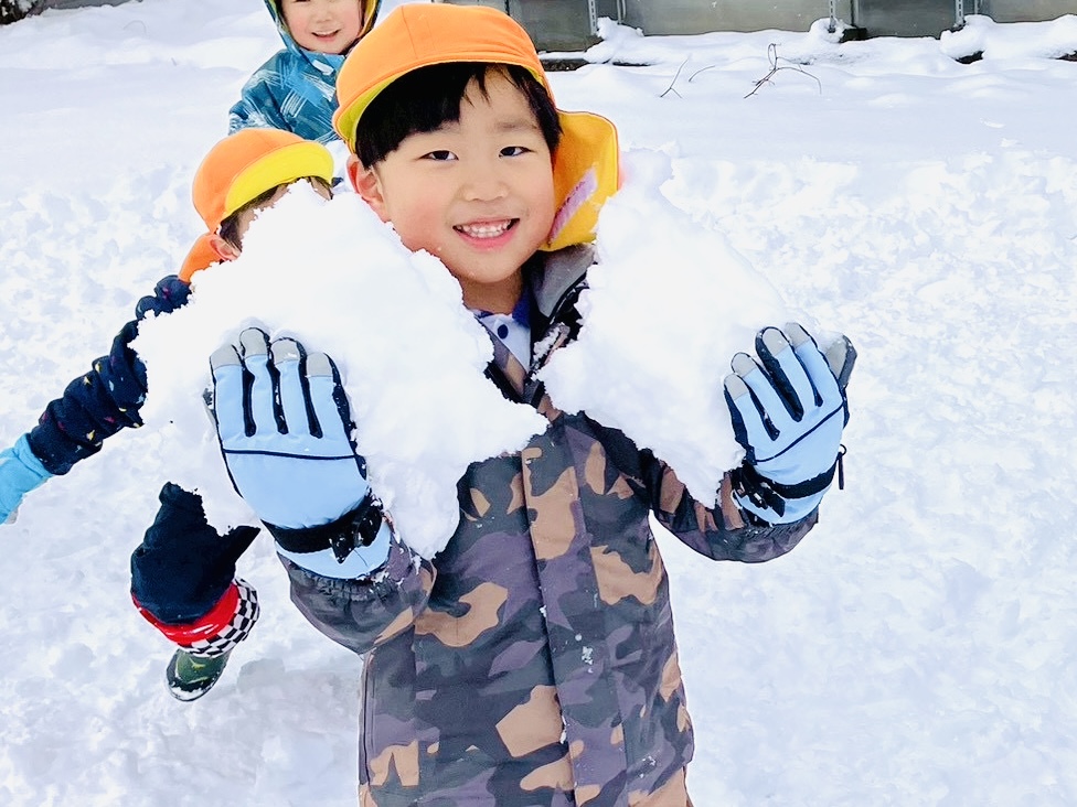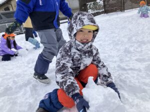 雪の上に寝転がったり、友だちと一緒に雪だるまを作ったりして、思いきり楽しむことができました♪