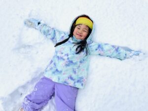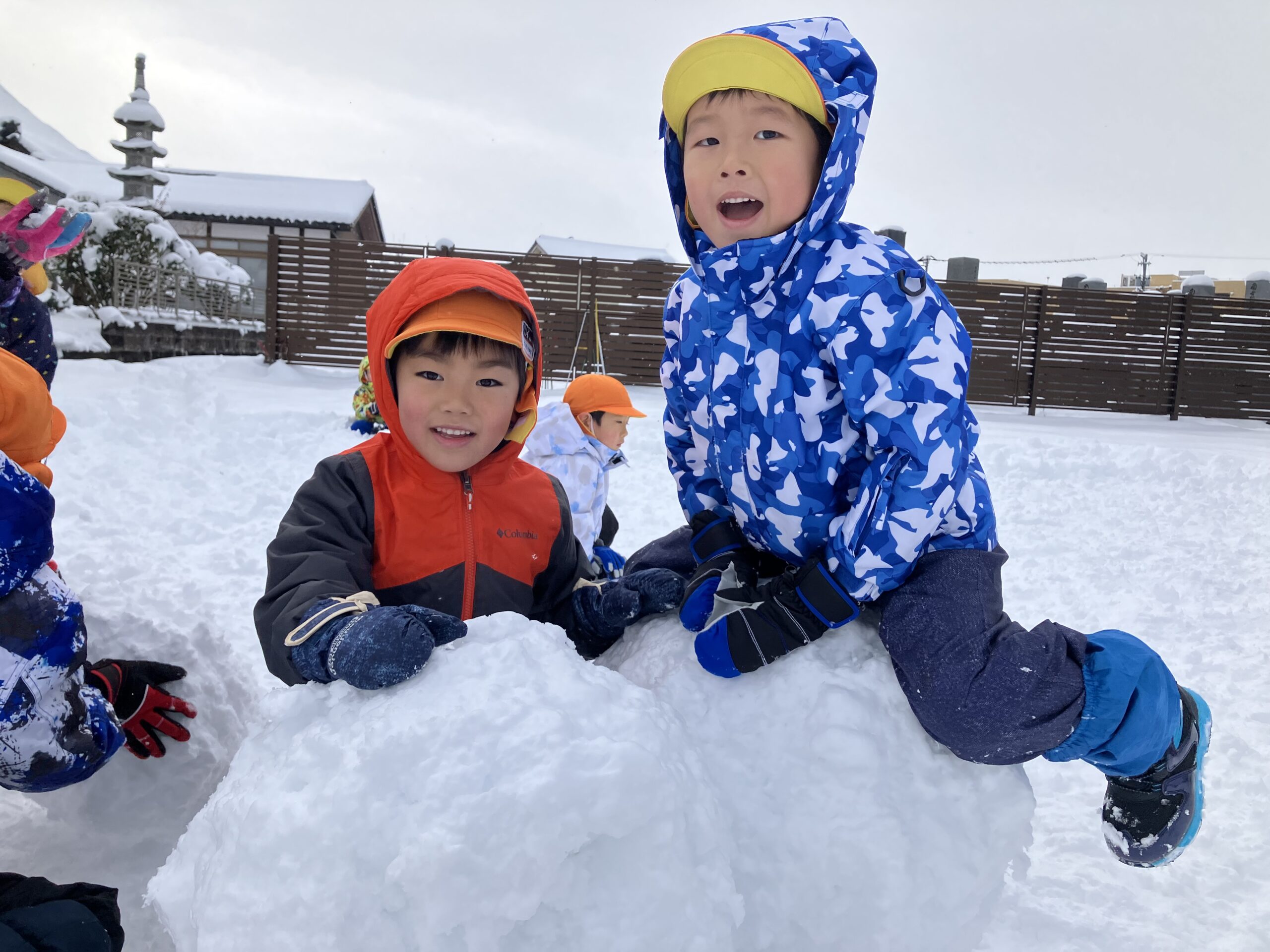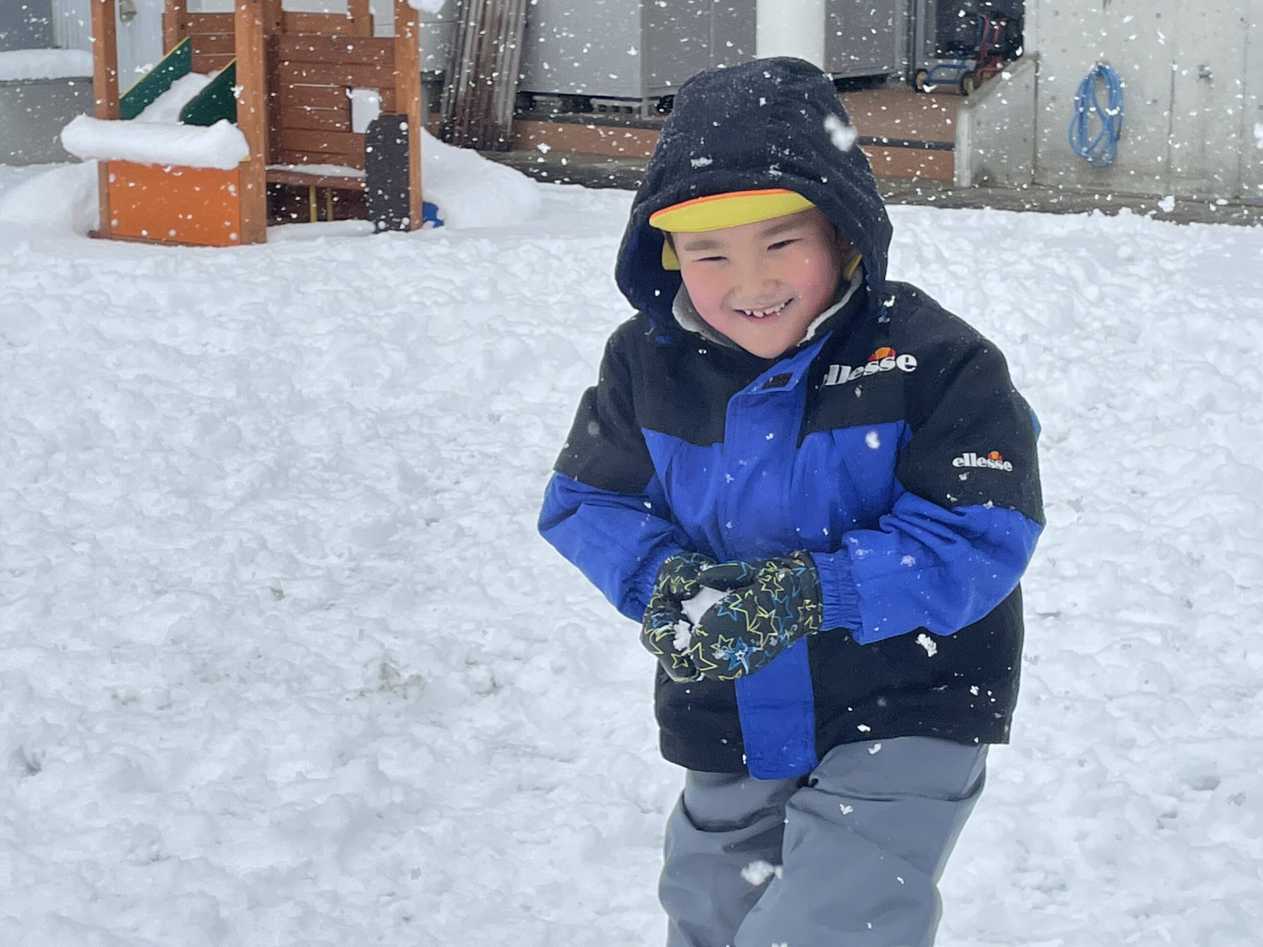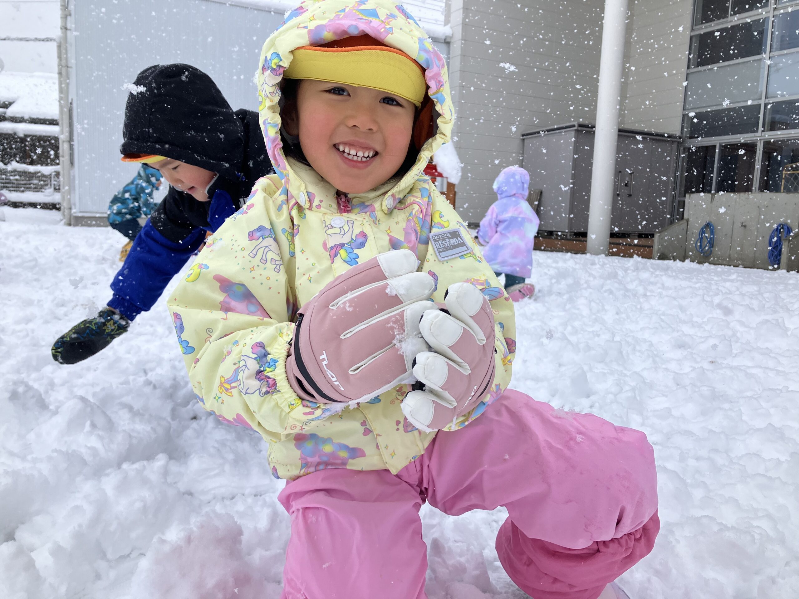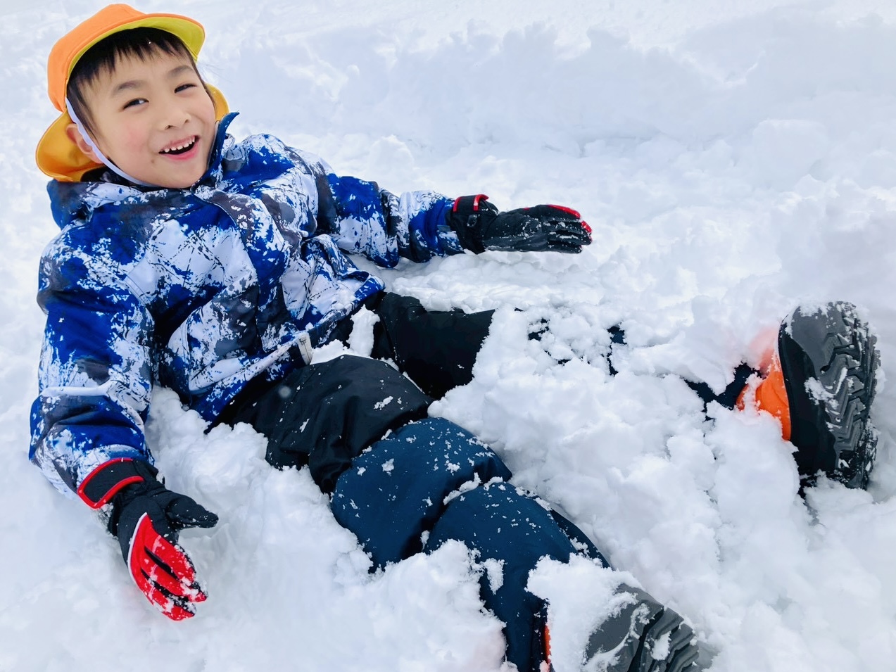 雪の上に寝転がったり、友だちと一緒に雪だるまを作ったりして、思いきり楽しむことができました♪